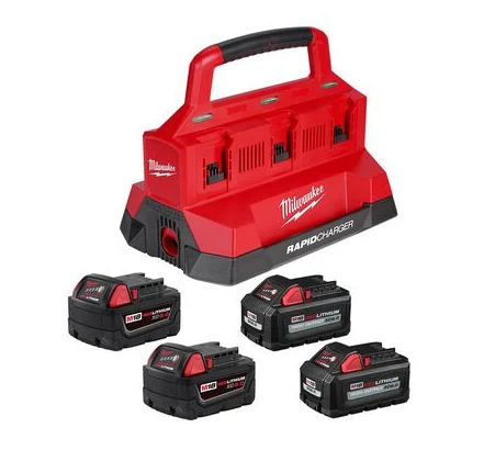 Milwaukee M18 PACKOUT Six Bay Rapid Charger Kit with Two M18 HIGH OUTPUT XC6.0 and Two M18 REDLITHIUM XC5.0 LID: